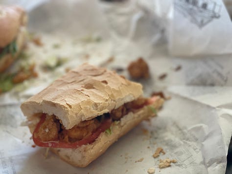 A couple of weeks later, we hosted a fraternity brother of mine (/former roommate) and his long-time girlfriend for a quick getaway to celebrate their anniversary - a weekend that included watching her alma mater Ole Miss beat LSU, our alma mater Delta State beat University of West Alabama, and sadly losses by both the Bulldogs (to ‘Bama) and the Saints (to the ‘Bucs). We had a blast as usual - and ate our way around town including grabbing poorboys from Parkway and a French 75 or two, from French 75.